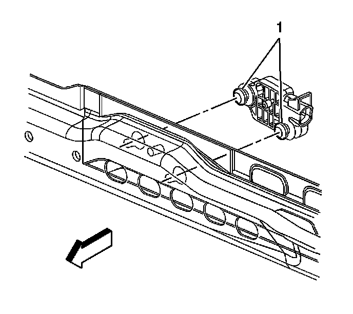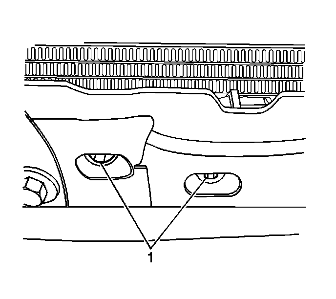 3. Loosen the fasteners (1) retaining the front discriminating sensors to the radiator support.