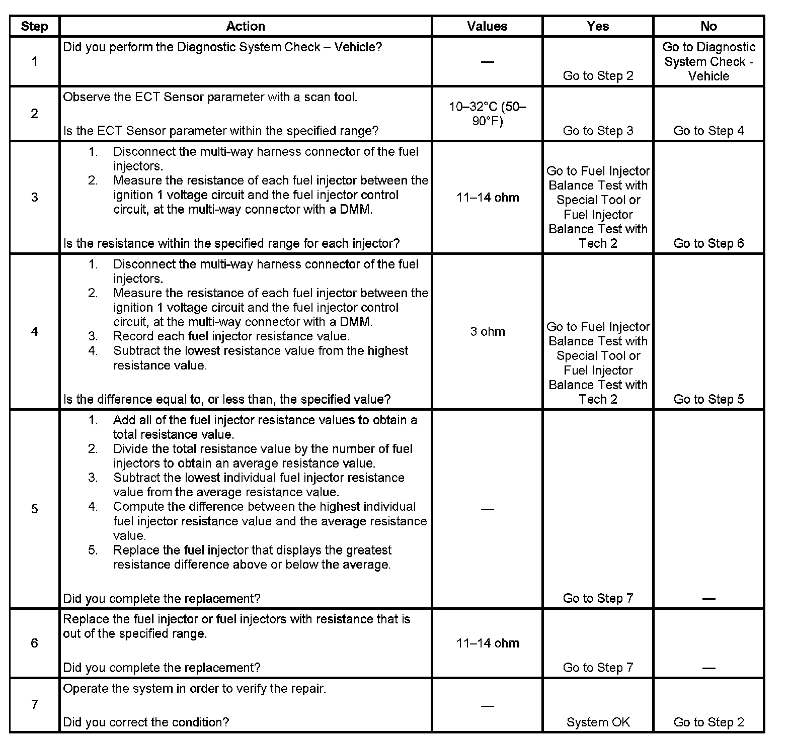 - Perform the fuel injector coil test within the conditions of the customer's concern. A fuel injector condition may only be apparent at a certain temperature, or under certain conditions.