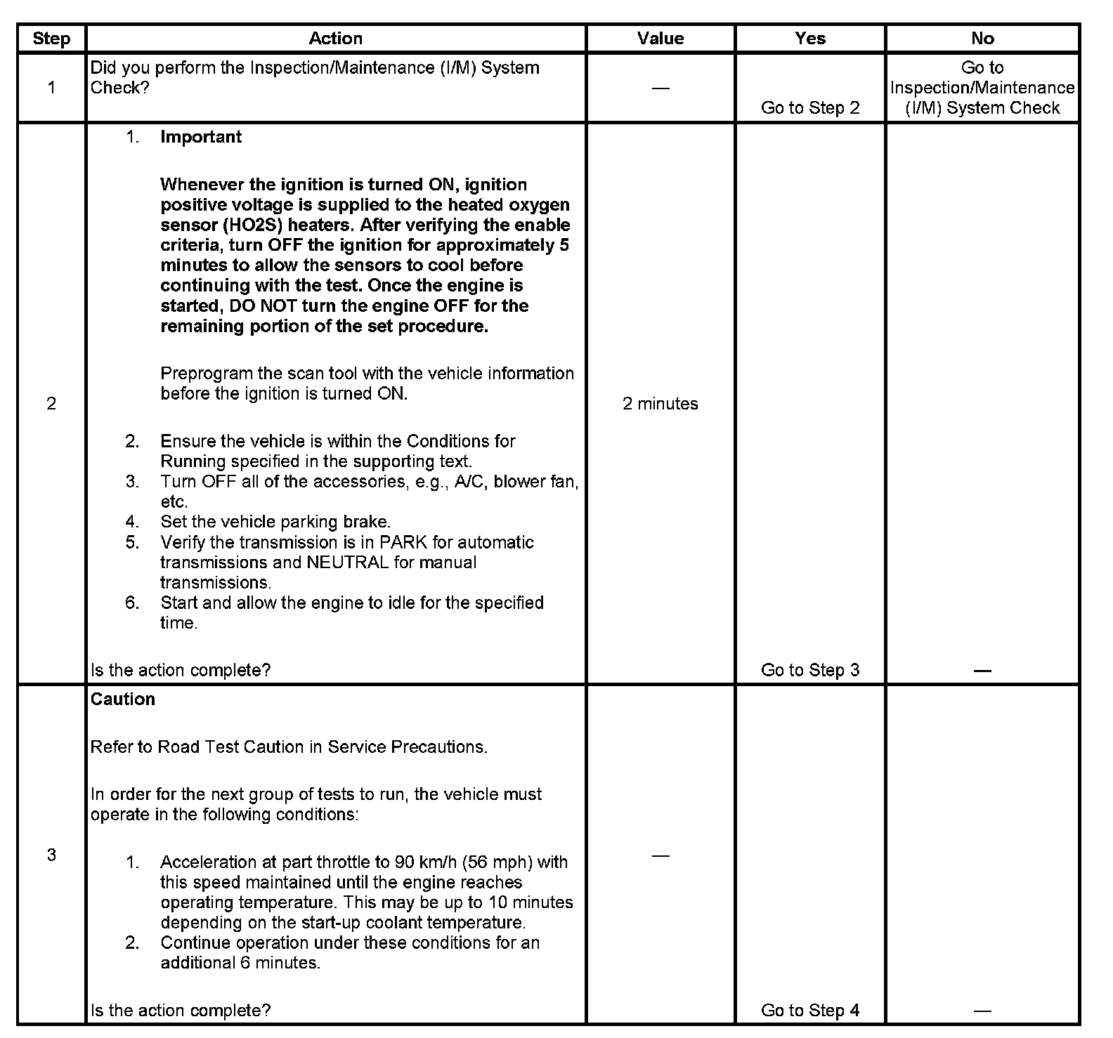 3. This step is to run the EVAP, AIR and the Oxygen Sensor Tests. The EVAP Test begins once the engine coolant reaches a calibrated temperature. The AIR Test, if equipped, begins shortly after Closed Loop and the indicated speed is achieved. The Oxygen Sensor Tests begin once the engine is at operating temperature, in Closed Loop fuel control, and a calibrated amount of time has elapsed.