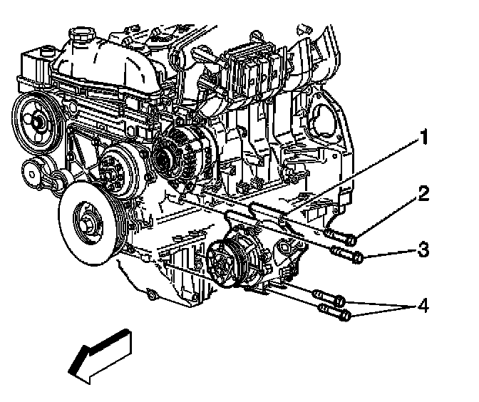 3. Install the compressor mounting bolts to the compressor (1).