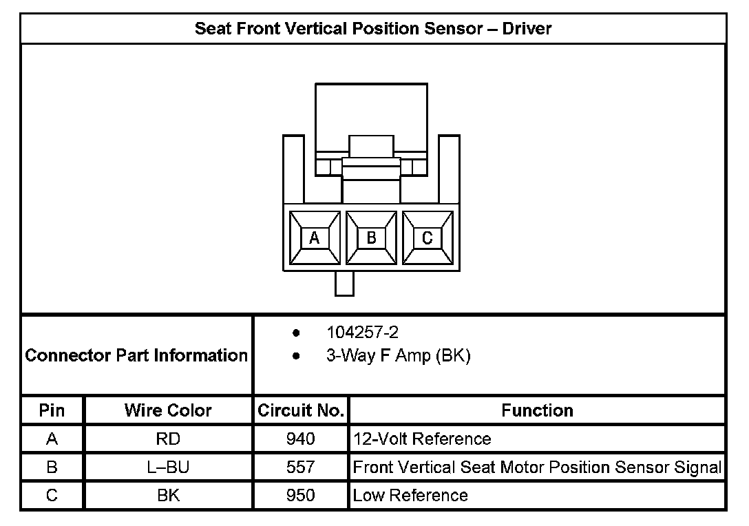 Seat Front Vertical Position Sensor - Driver: