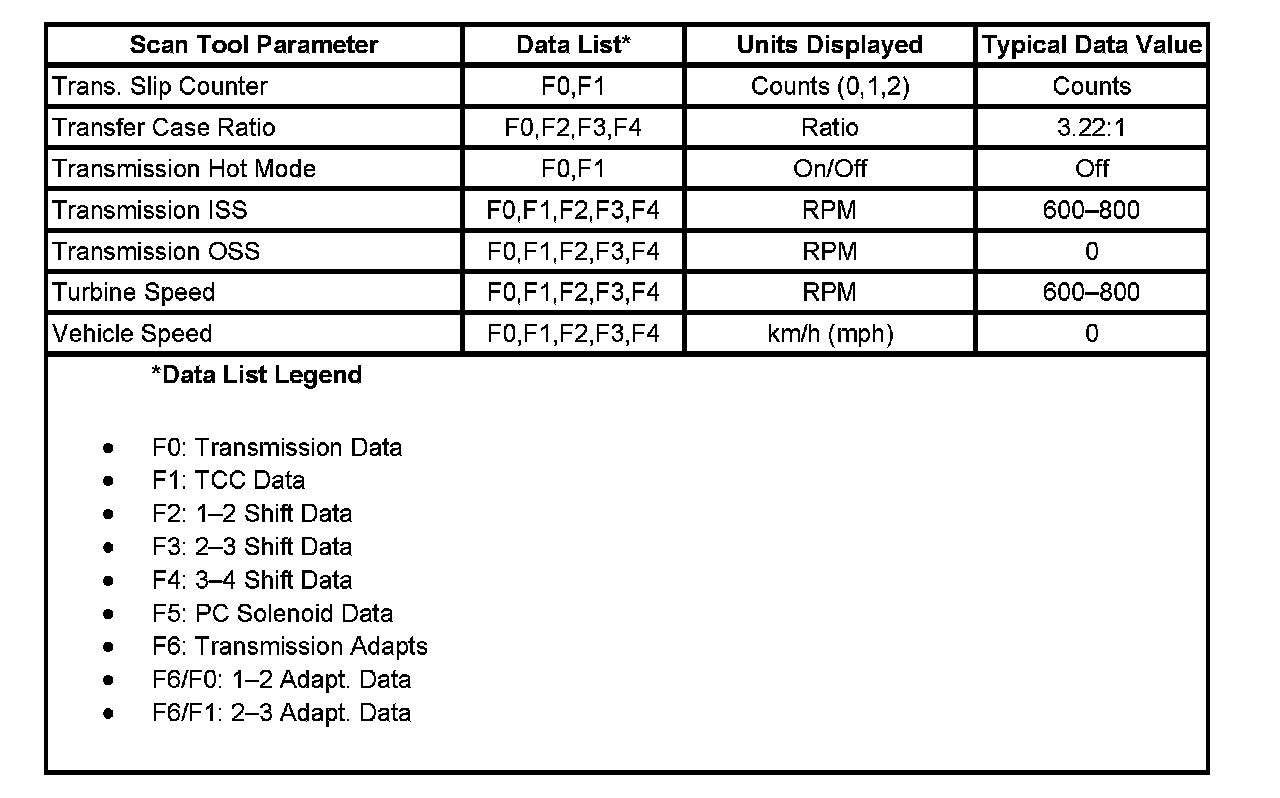 Only the parameters listed below are used in this manual for diagnosing. If a scan tool displays other parameters, the values are not recommended by General Motors for use in diagnosis.
