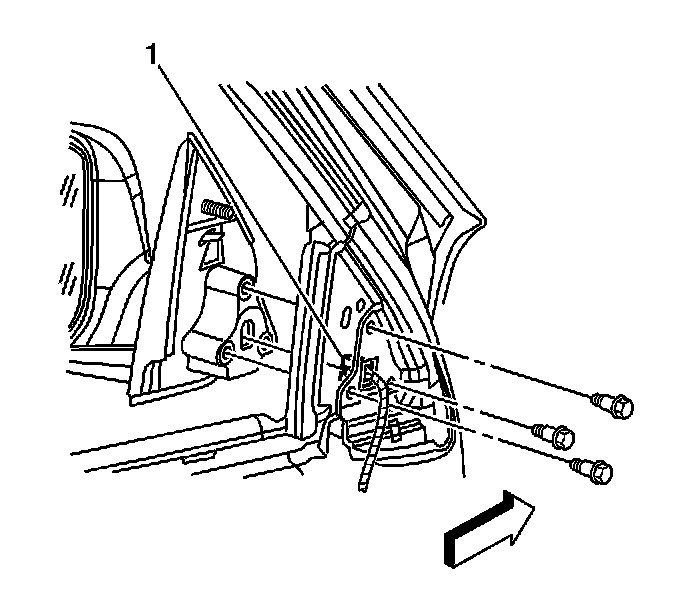 2. Disconnect the electrical connector (1) from the outside review mirror, if equipped with DE6.