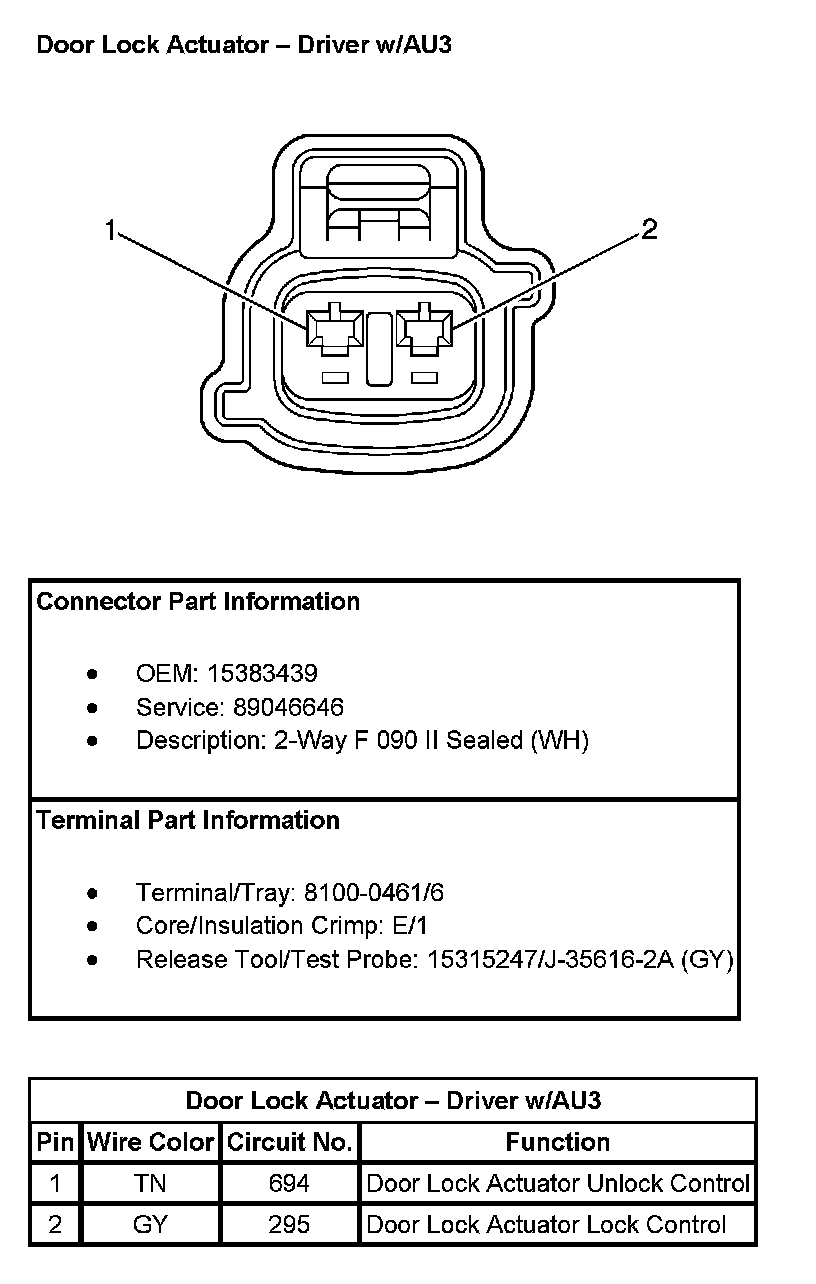Door Lock Actuator - Driver (With RPO Code AU3):