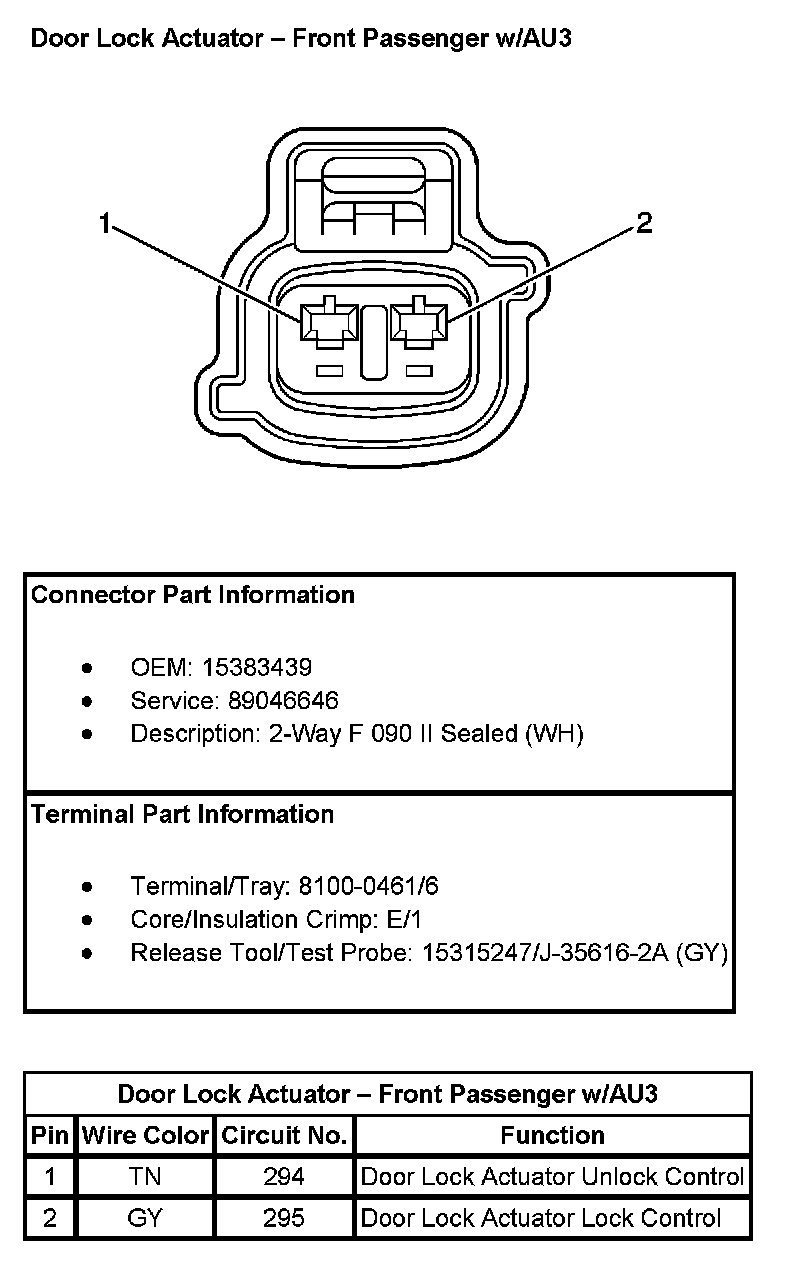Door Lock Actuator - Front Passenger (With RPO Code AU3):