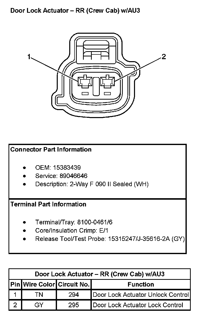 Door Lock Actuator - RR (Crew Cab) (With RPO Code AU3):