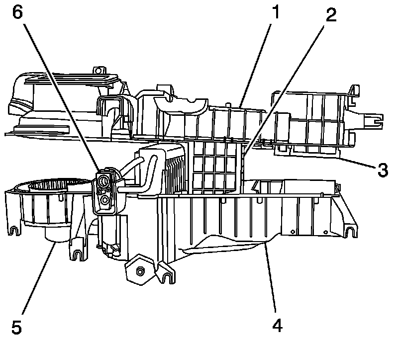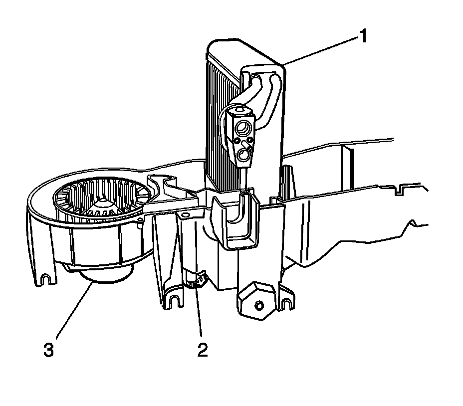 2. Install the evaporator core (1) to the HVAC module assembly.