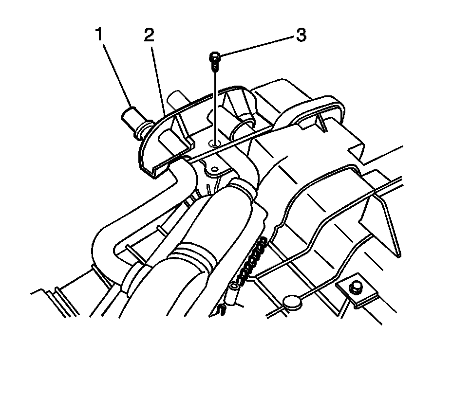 2. Remove the heater core pipes clamp screw (3).