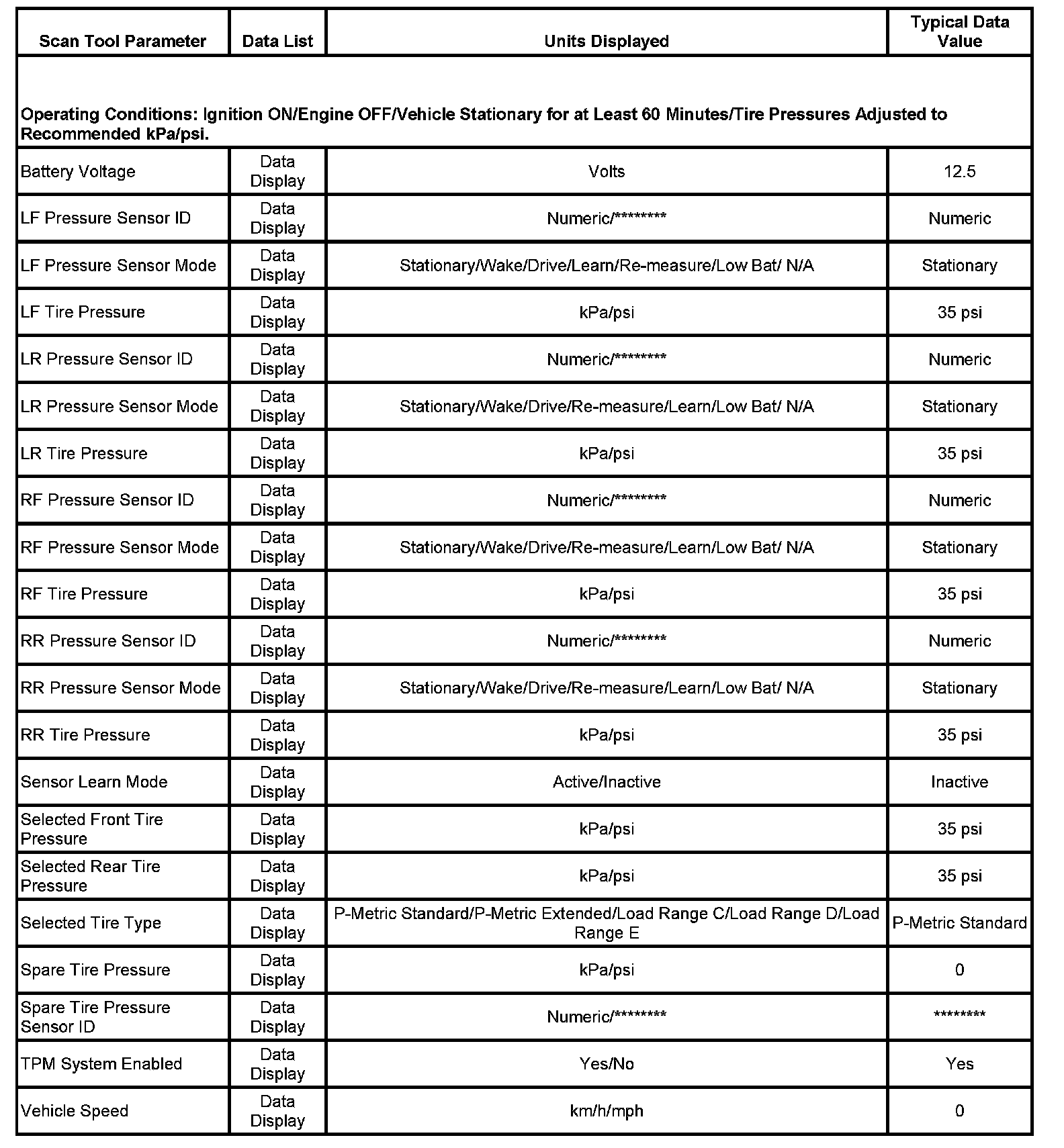 Scan Tool Data List: