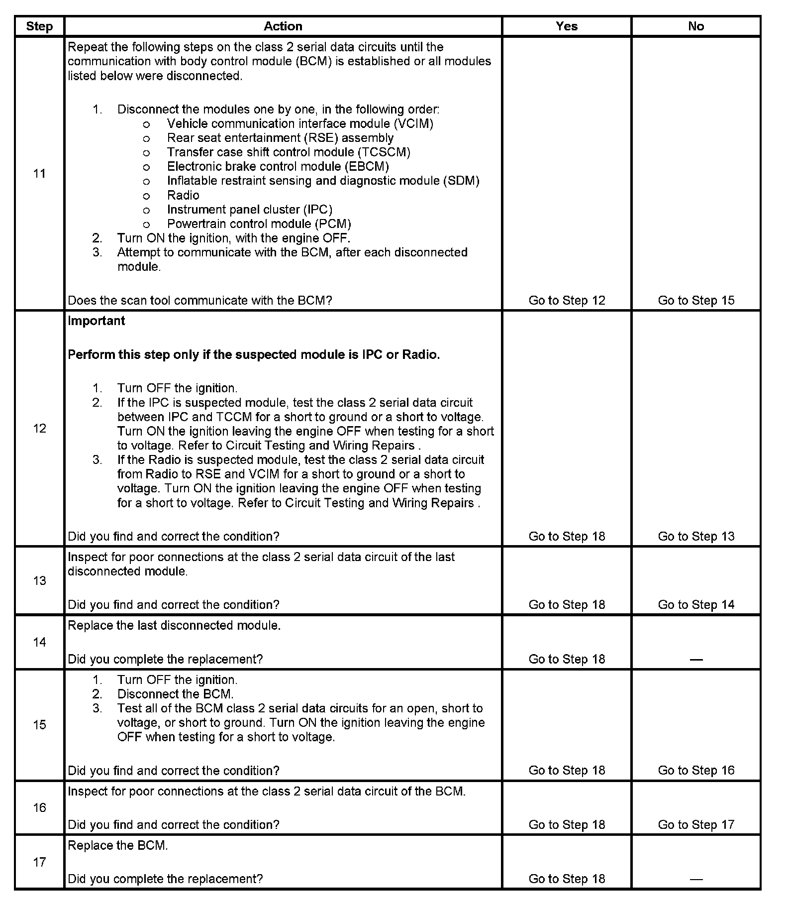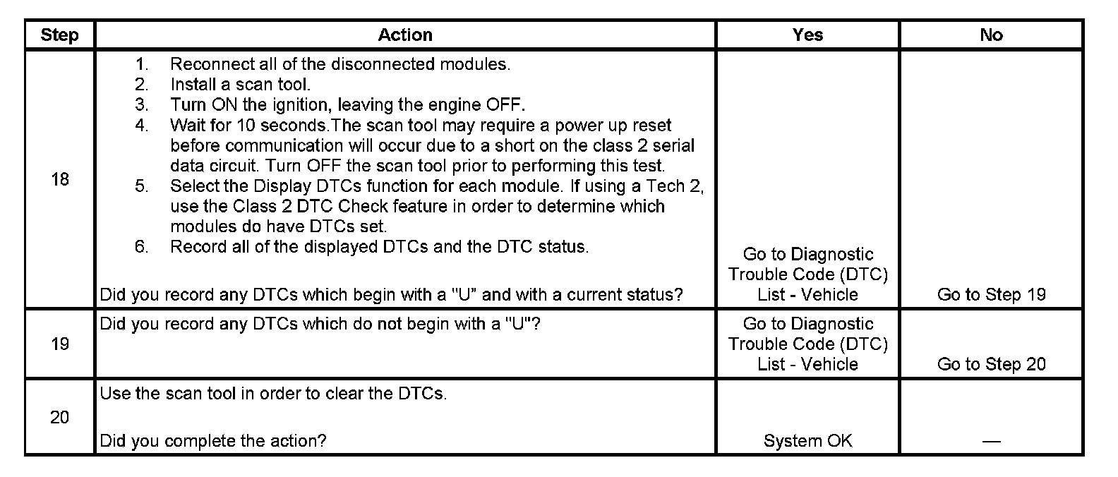 3. A partial malfunction in the class 2 serial data circuit uses a different procedure from a total malfunction of the class 2 serial data circuit. The following modules communicate on the class 2 serial data circuit: