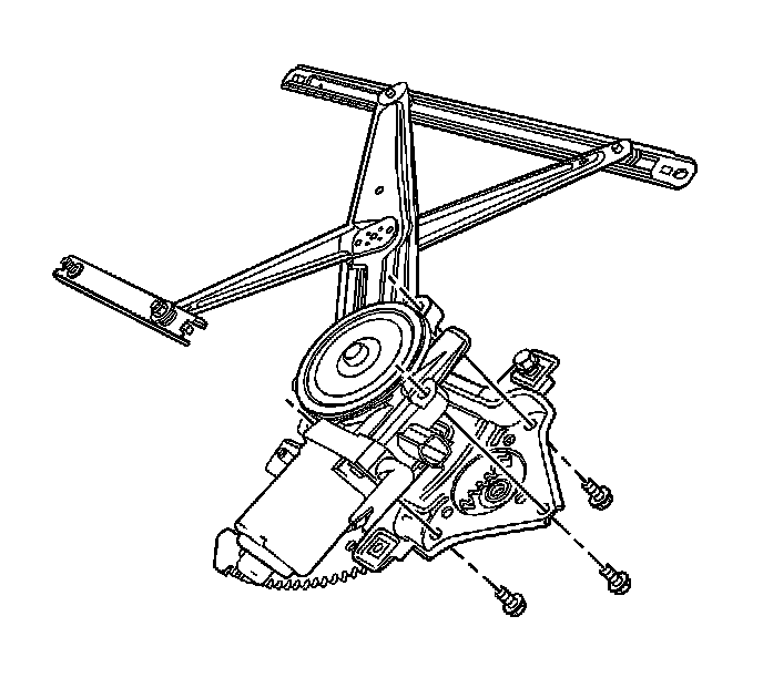 4. Remove the bolts retaining the front window regulator motor to the regulator bracket.