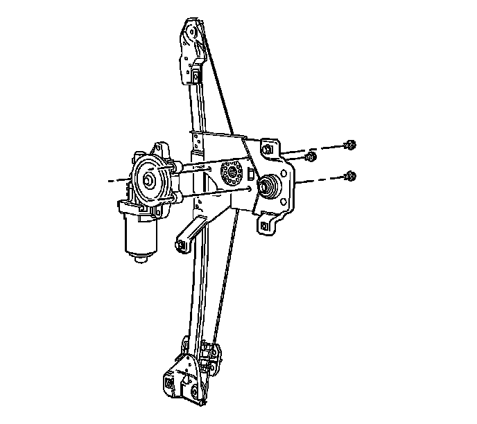 2. Remove the bolts retaining the rear window regulator motor to the regulator bracket.