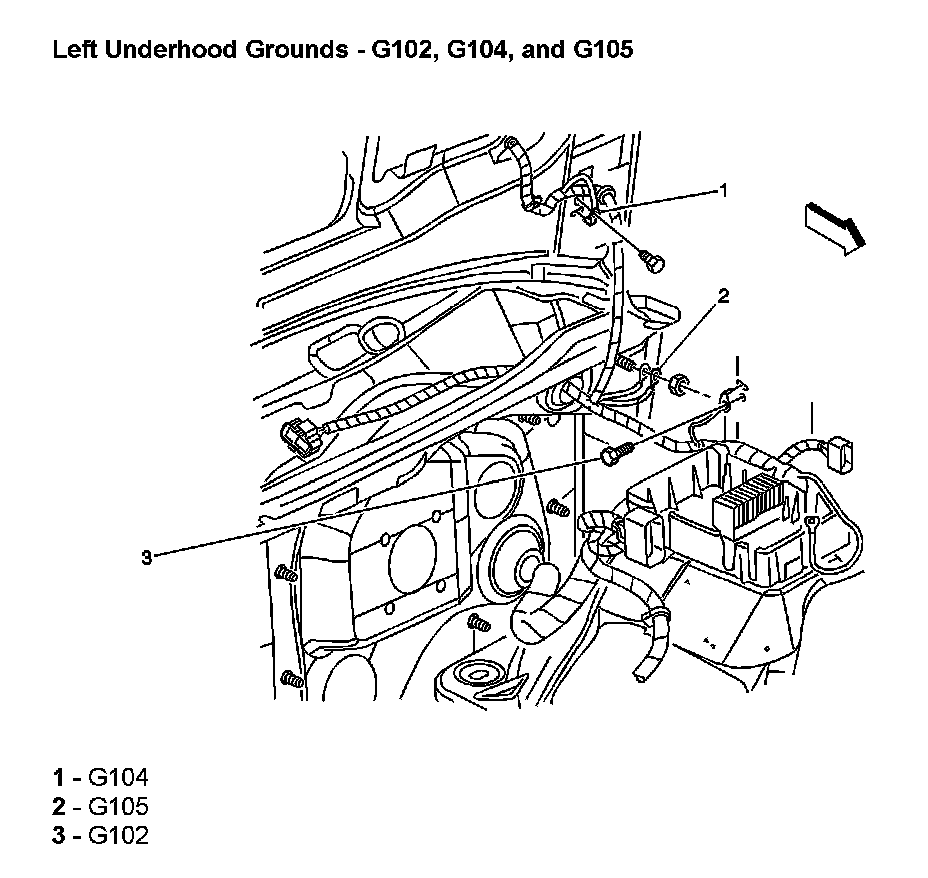Left Underhood Grounds - G102, G104, And G105: