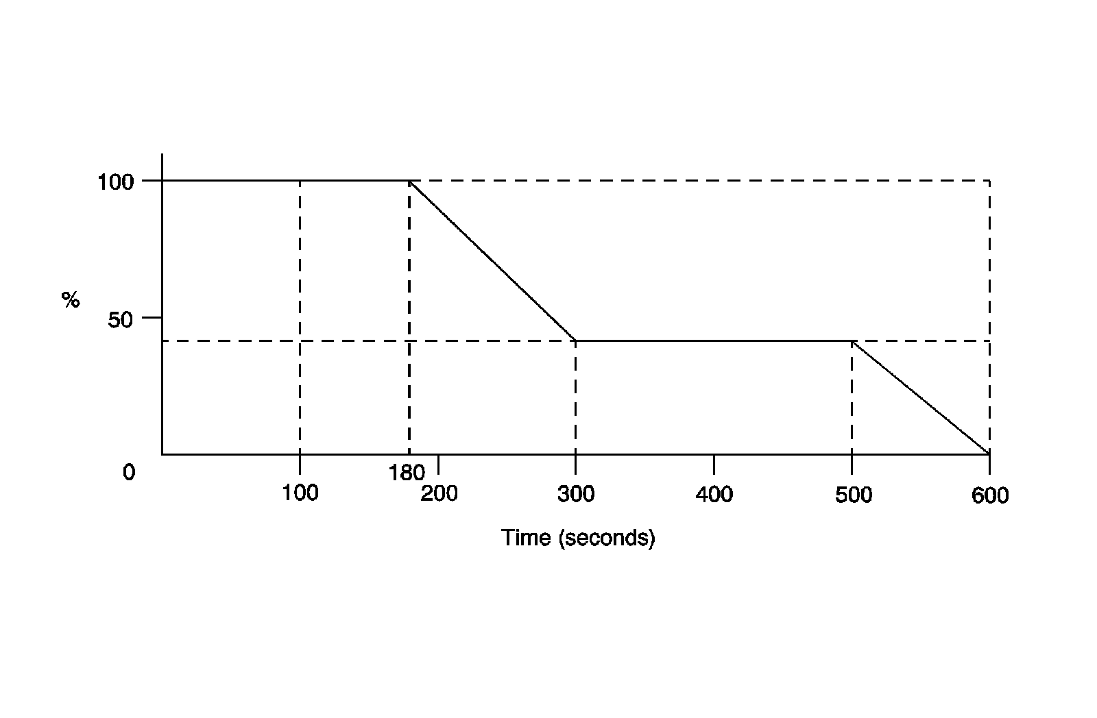 The IAH will be commanded to 100 percent when the engine coolant temperature is below 5°C (41°F) for 180 seconds after key up, then it will ramp down to 42 percent after 180-300 seconds and will hold it there until 300-500 seconds. After 500-600 seconds the IAH will ramp down to 0 percent. When the engine coolant is 10-40°C (50-104°F) the IAH is 100 percent for 30 seconds after key up then ramps down to 42 percent after 30-90 seconds and holds it there for up to 500 seconds, then it ramps down to 0 percent from 500-600 seconds.