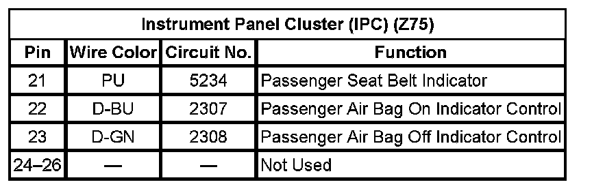 Instrument Panel Cluster (IPC) (Z75) (Pin 21 To 26):