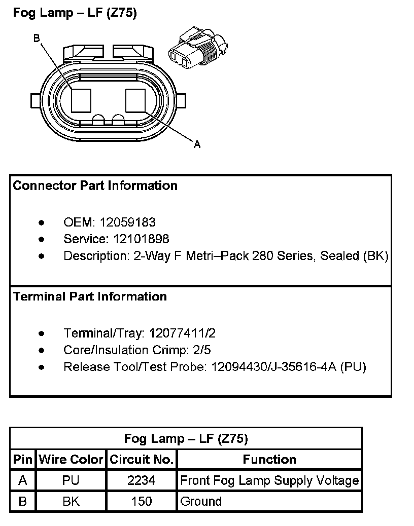 Fog Lamp - LF (With RPO Codes X88, Z88 And T96):