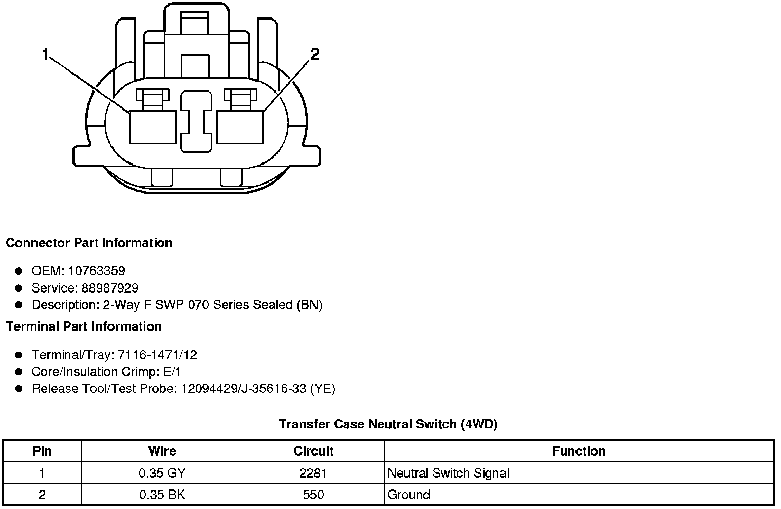 Transfer Case 2/4 Wheel Indicator Switch (4WD)