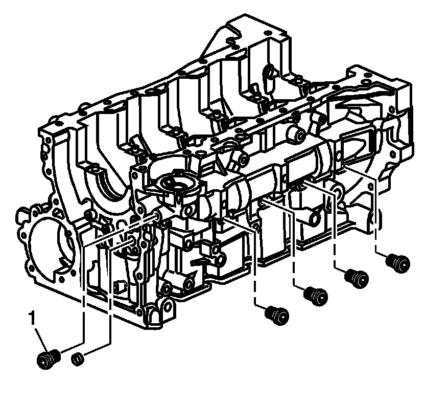 * Tighten the front (1) engine block oil gallery plug to 80 N.m (40 lb ft).