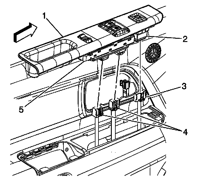 4. Disconnect the electrical connectors (3, 4) from the switches (2, 5).