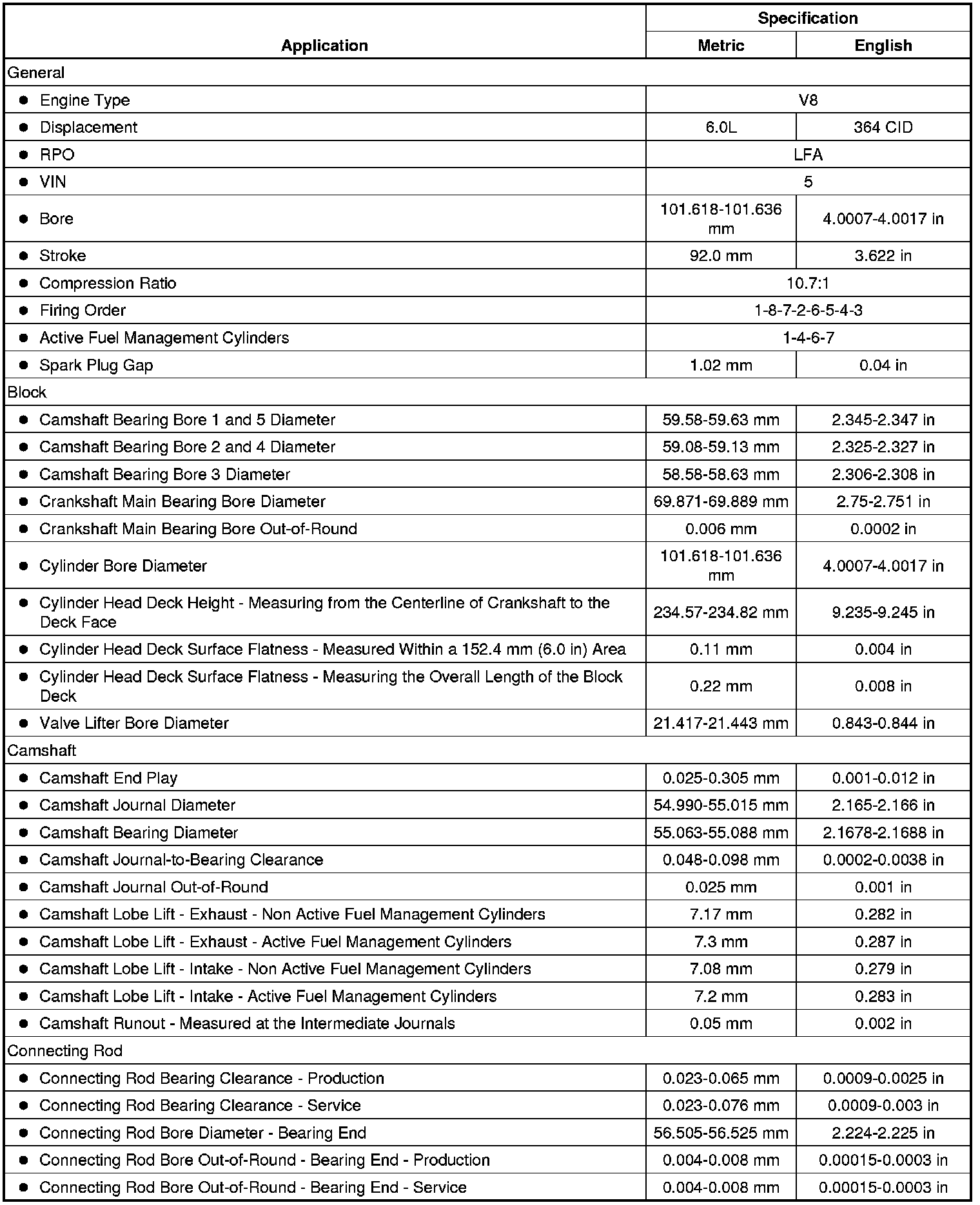 Engine Mechanical Specifications (RPO LFA)