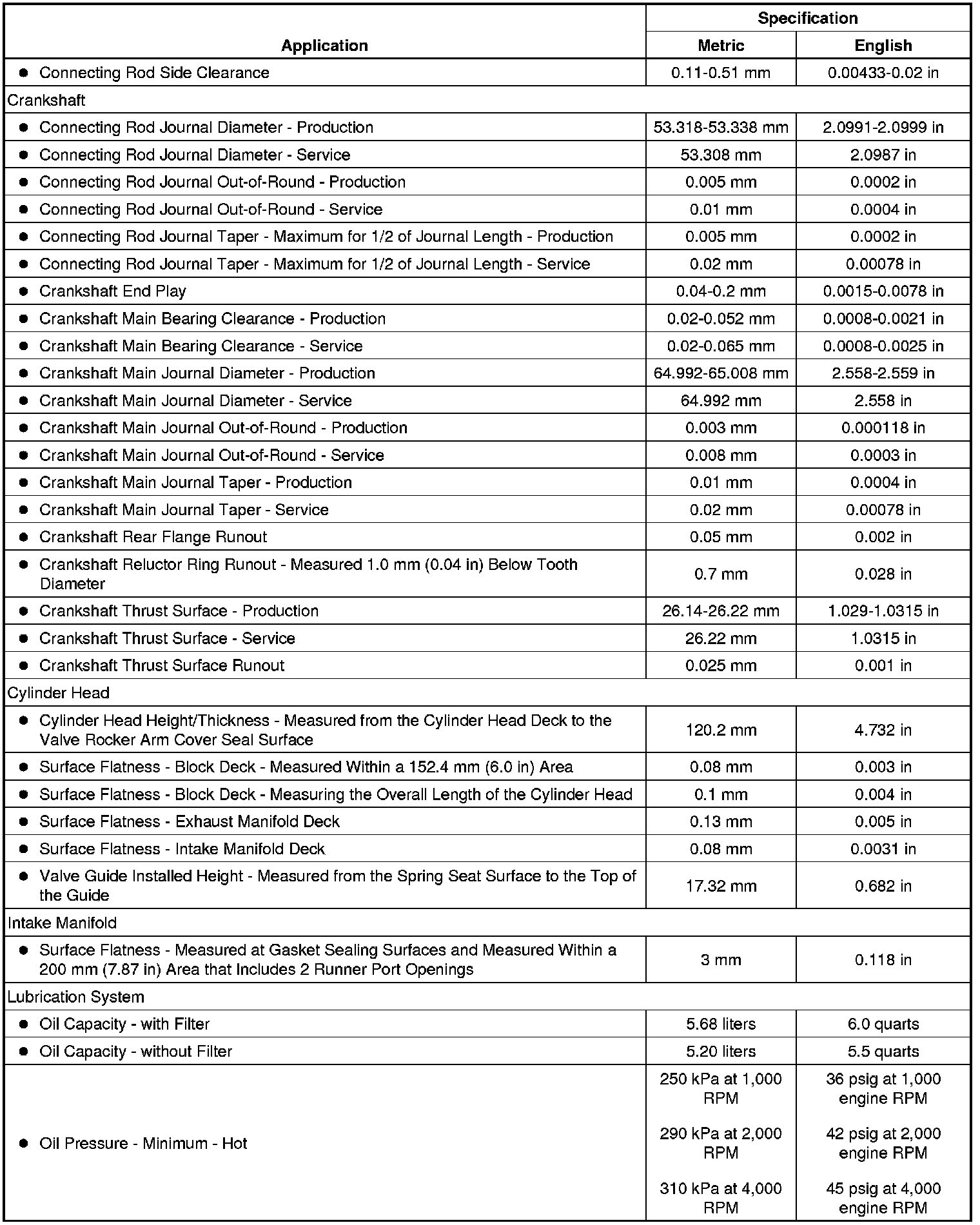 Engine Mechanical Specifications