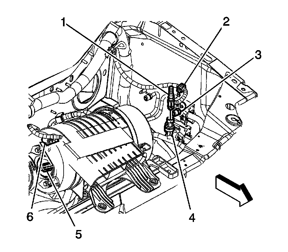 3. Connect the engine wiring harness electrical connector (6) to the MAF/IAT sensor (5).