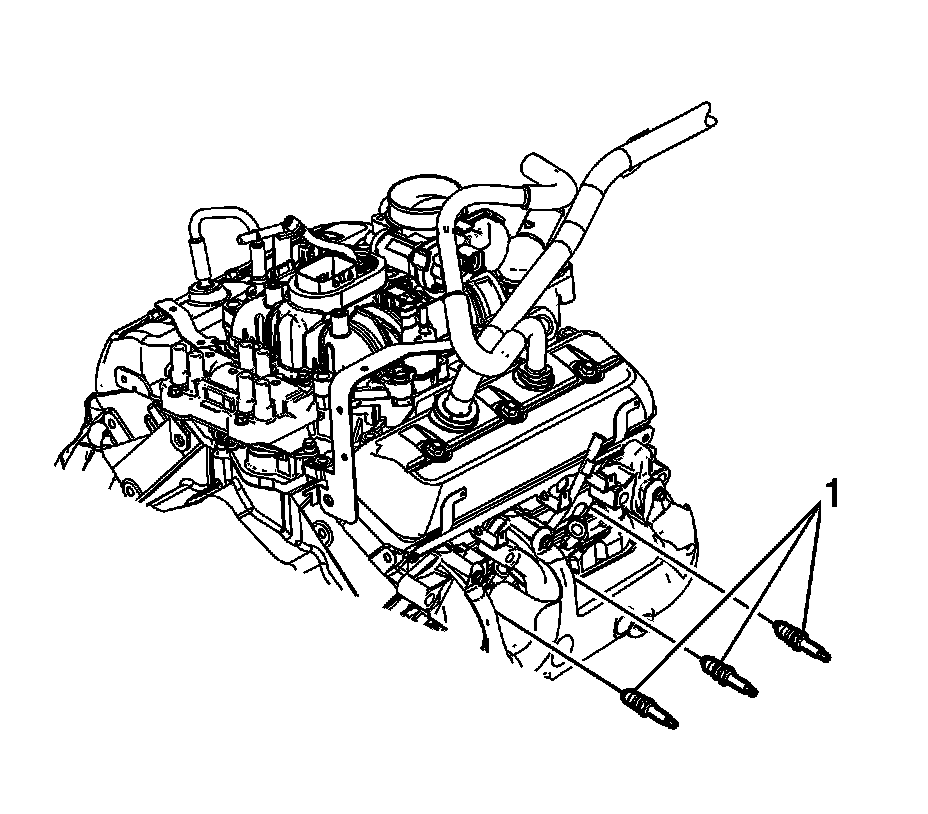 6. Remove the appropriate left side spark plug (1). If removing more than 1 plug, place each plug in a tray marked with the corresponding cylinder number.