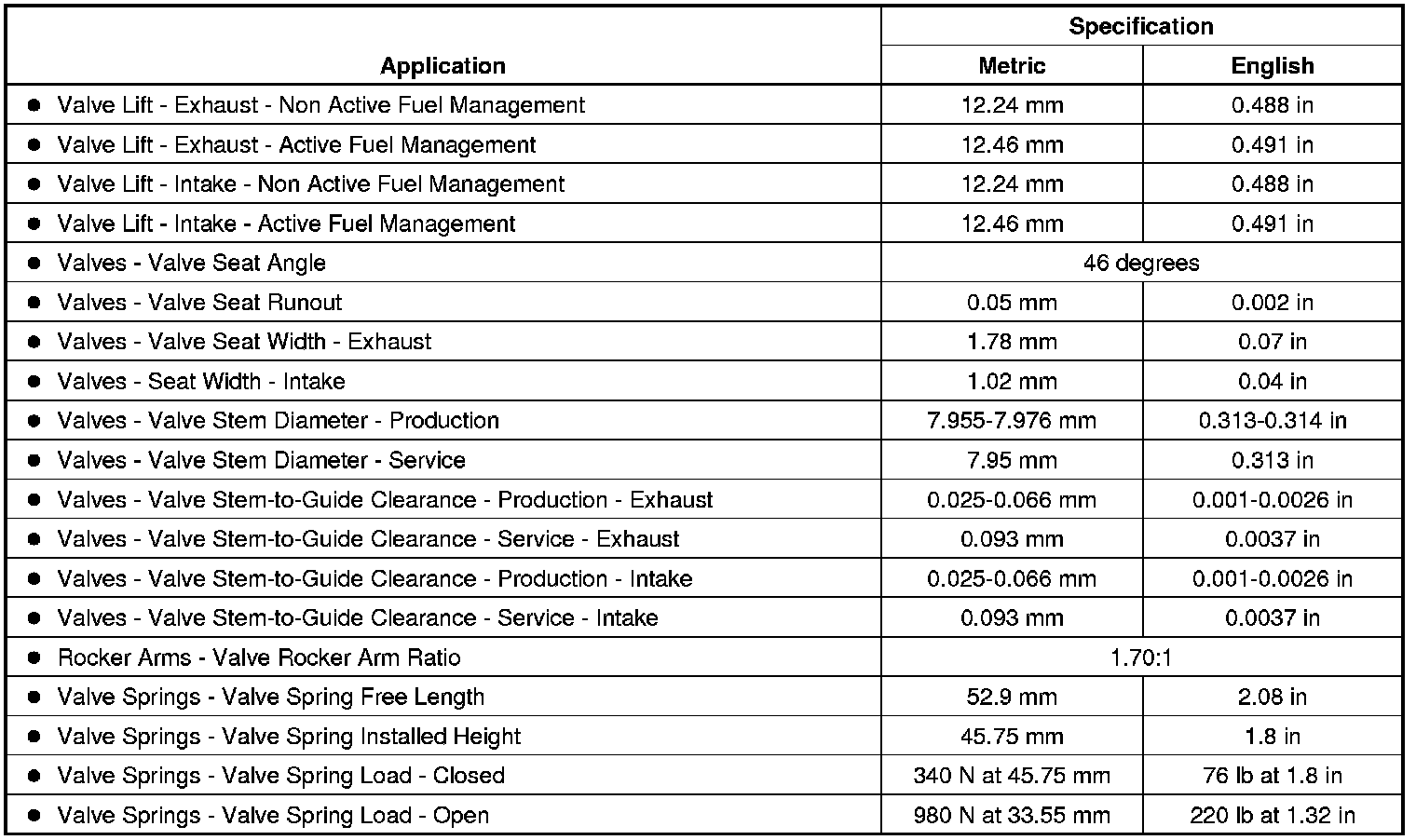 Engine Mechanical Specifications