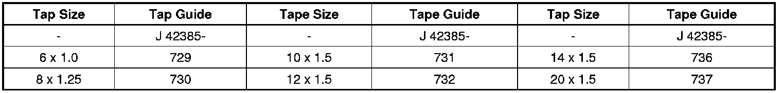 The tool kit J 42385-400 is designed for use with either a suitable tap wrench or drill motor. Limited access and larger hole repair may process better using a tap wrench. An extension J 43965 may also be necessary to drive the thread repair tooling dependent on access to the hole being repaired.