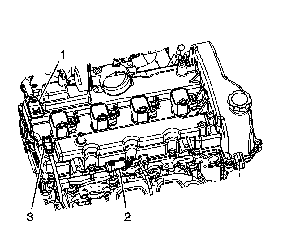 66. Connect the engine wiring harness retainer (2) to the camshaft cover (3).