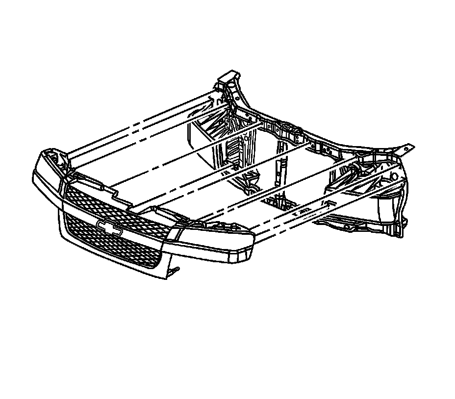 6. Position the grille onto the radiator support such that the lower locating tabs are properly aligned.