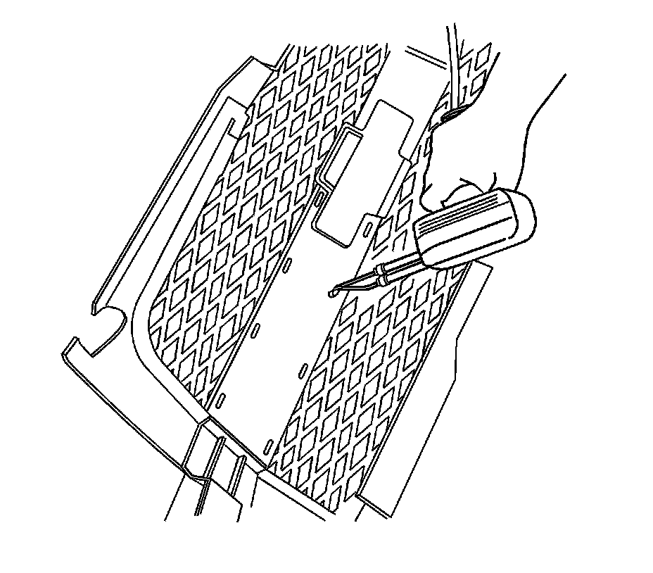 4. Use a flat-bladed tool in order to release the retainers that retain the grille to the body.