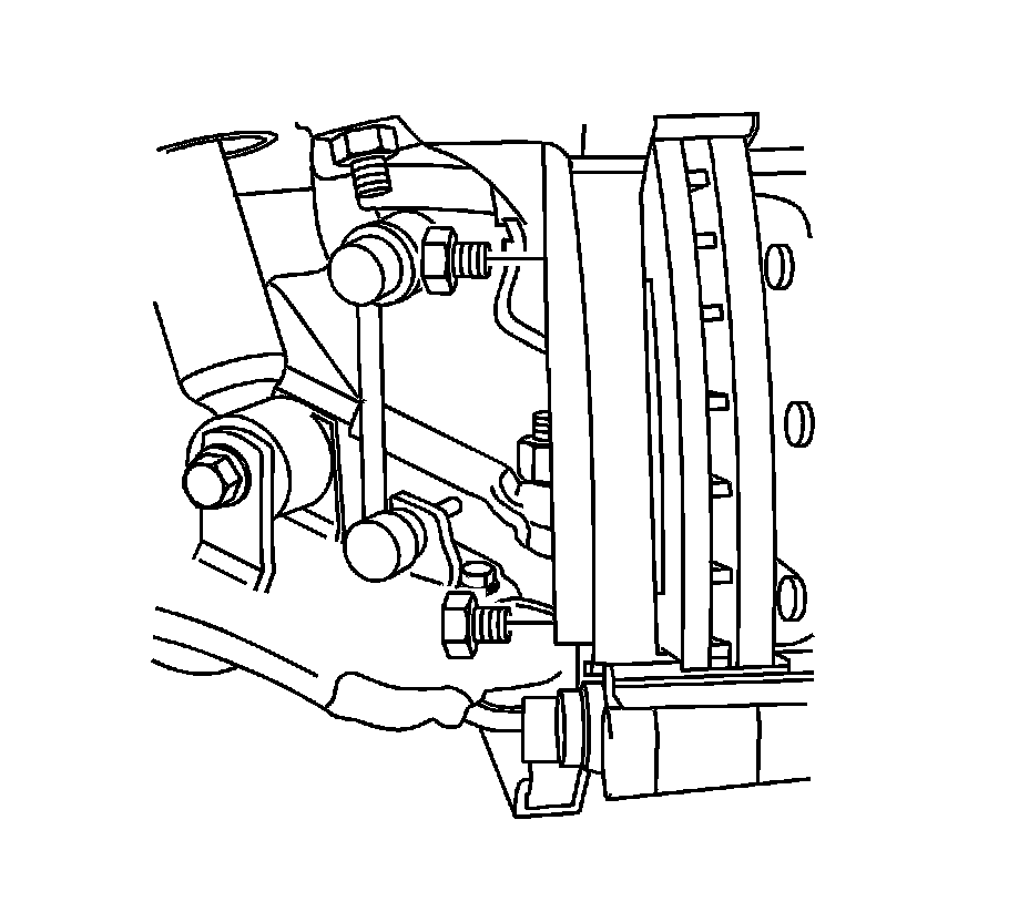 Caution: Support the brake caliper with heavy mechanic wire, or equivalent, whenever it is separated from its mount and the hydraulic flexible brake hose is still connected. Failure to support the caliper in this manner will cause the flexible brake hose to bear the weight of the caliper, which may cause damage to the brake hose and in turn may cause a brake fluid leak.