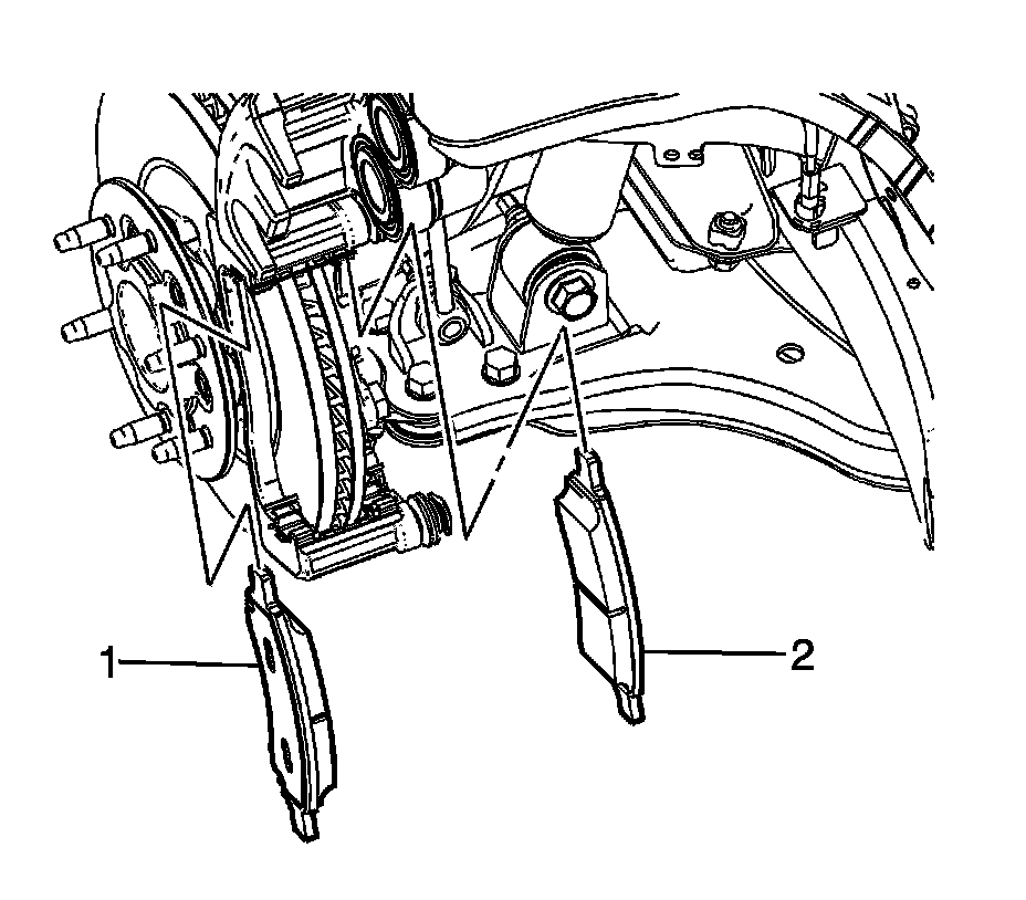 11. Remove the inner brake pad. (2).