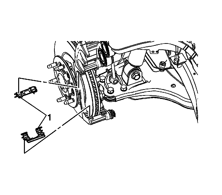 12. If installing new disc brake pads, remove and discard the brake pad shims (1).