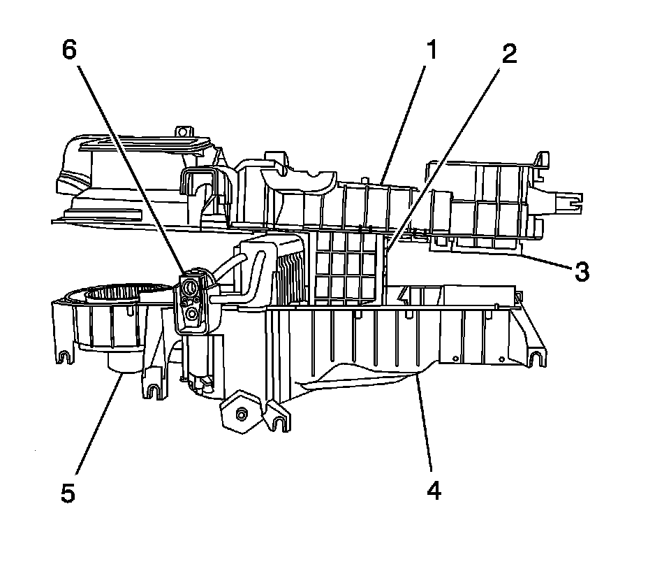 1. Remove the HVAC module assembly. Refer to Air Conditioning and Heater Module Assembly Removal and Installation (Service and Repair).