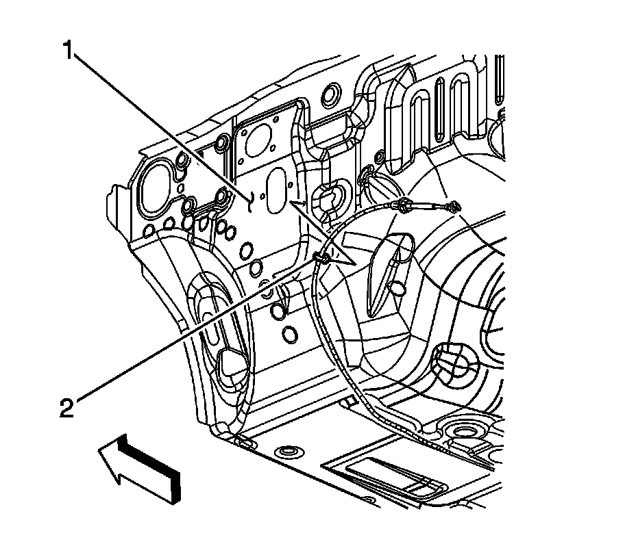 6. Push the range selector cable end (2) onto the range selector lever ball stud (1) to secure.