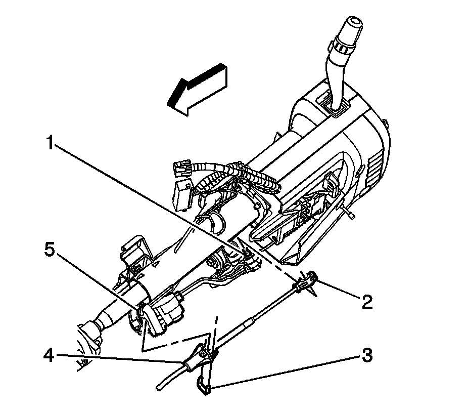13. Push the range selector cable locking tabs inward toward each other to release from the steering column bracket (5).