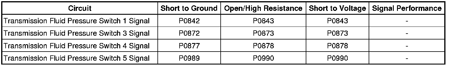 - Transmission Fluid Pressure Switch 1 Circuit High Voltage