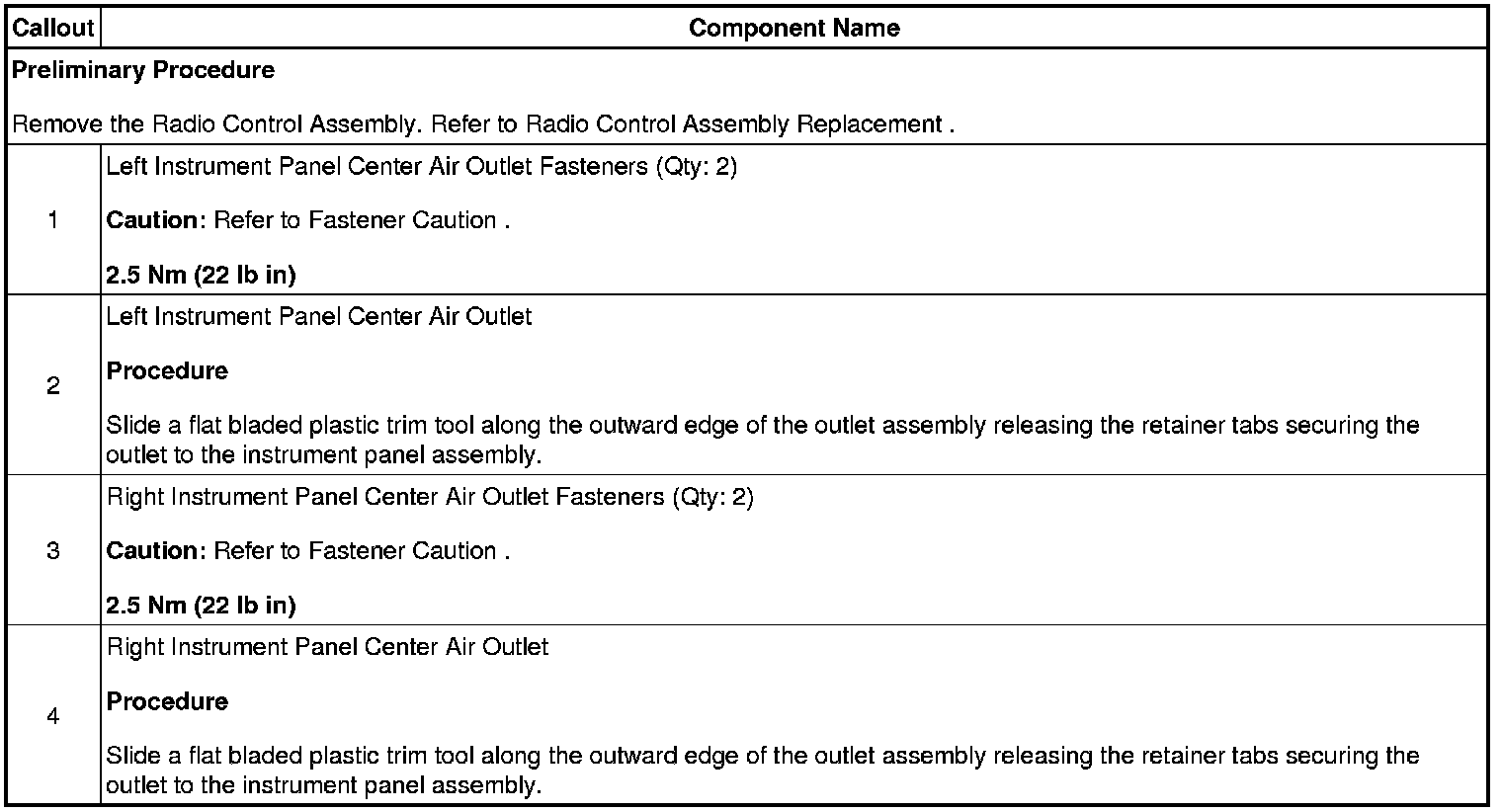 Instrument Panel Center Air Outlet Replacement (Terrain)