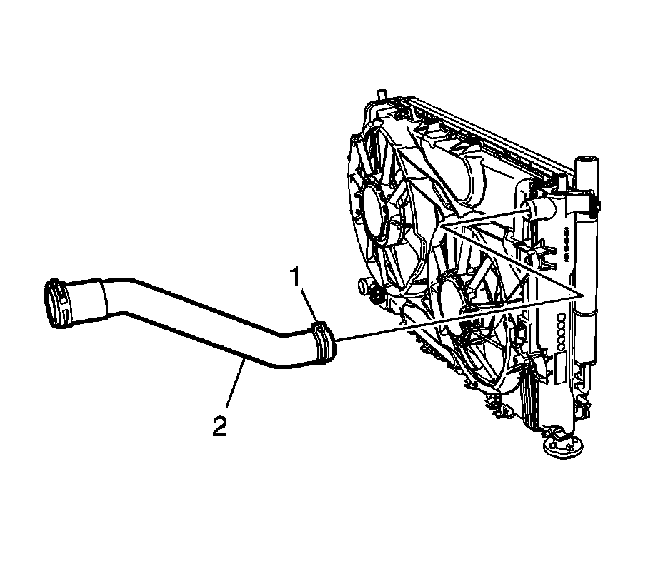 3. Disengage tension on the radiator inlet hose clamp (1) at the radiator using J 38185 - Hose Clamp Pliers.