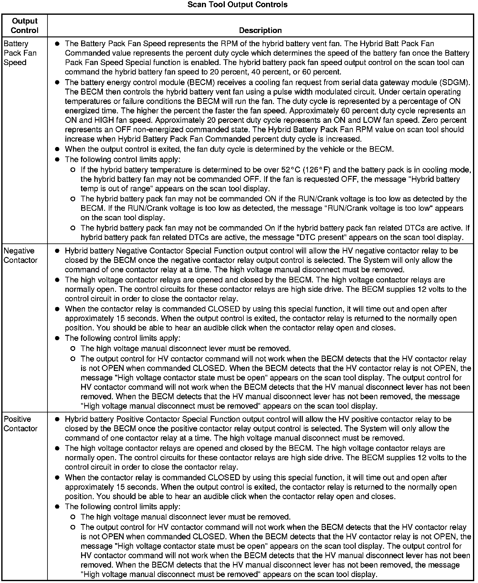 The Drive Motor Generator Battery Control Module Scan Tool Data List contains all Hybrid Battery related parameters that are available on the scan tool. The list is arranged in alphabetical order. A given parameter may appear in any one of the data lists, and in some cases may appear more than once, or in more than one data list in order to group certain related parameters together.