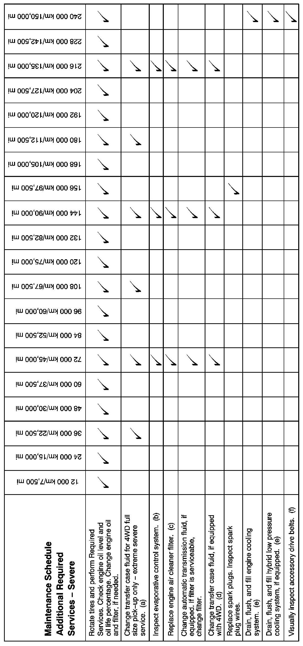 Footnotes - Maintenance Schedule Additional Required Services - Severe