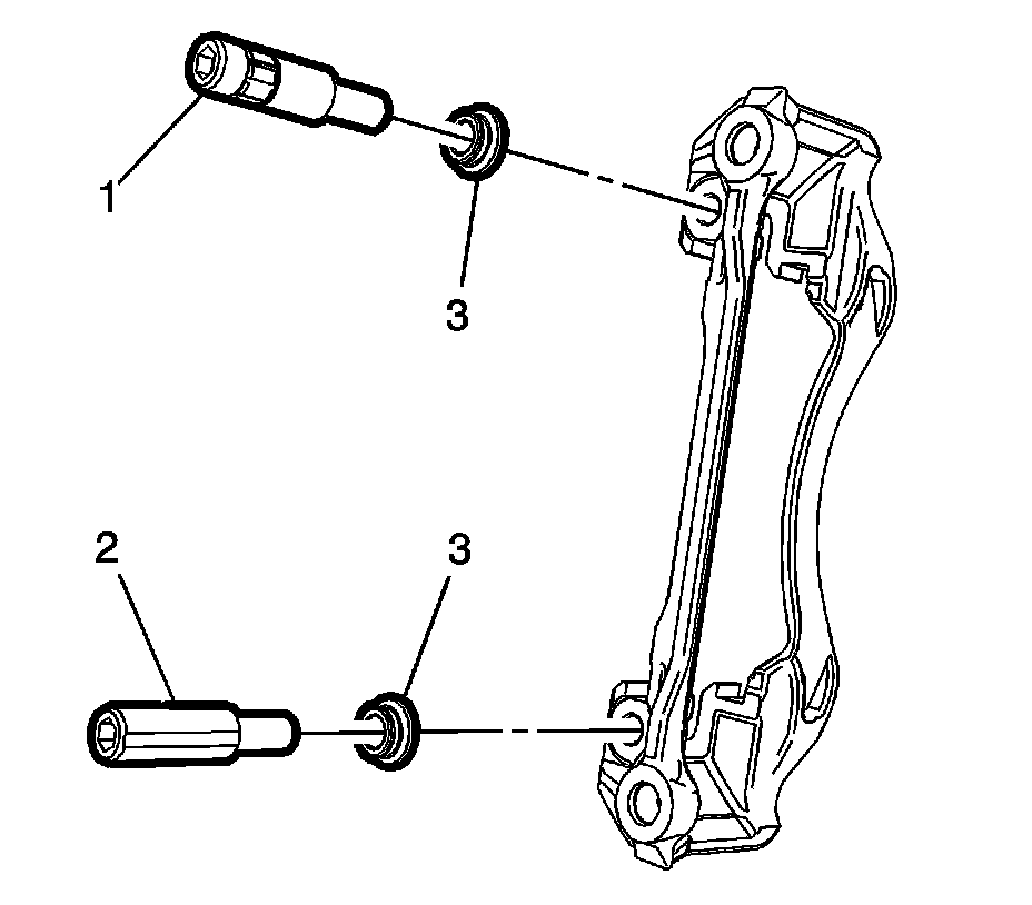 Note: The upper brake caliper guide pin is equipped with a bushing and must be installed in the same position.