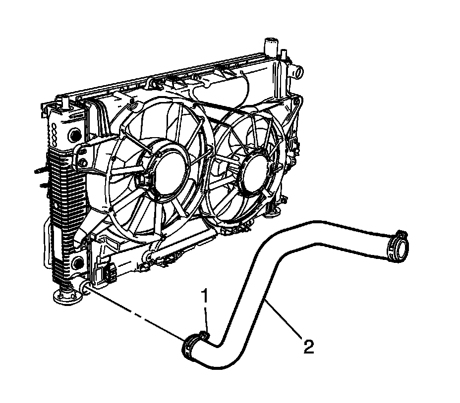 4. Install the radiator outlet hose (2) to the radiator.