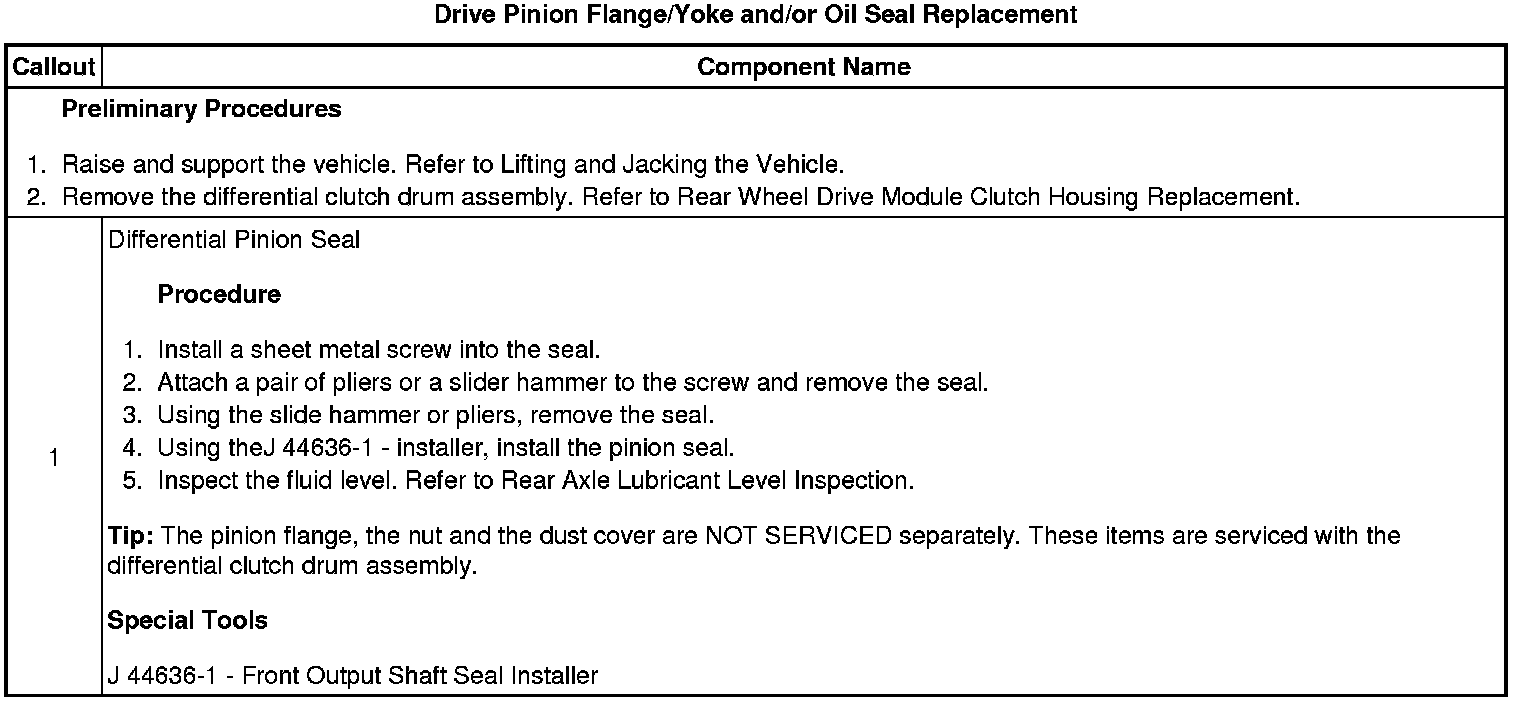 Drive Pinion Flange/Yoke and/or Oil Seal Replacement