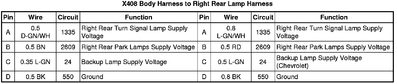 X408 Body Harness to Right Rear Lamp Harness
