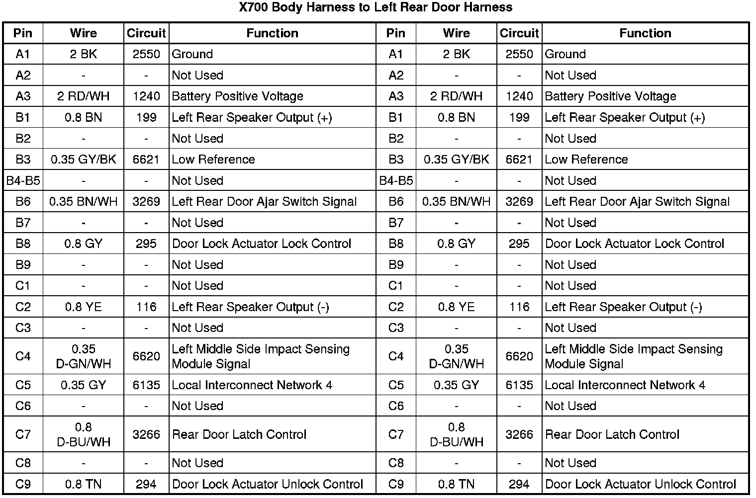 X700 Body Harness to Left Rear Door Harness