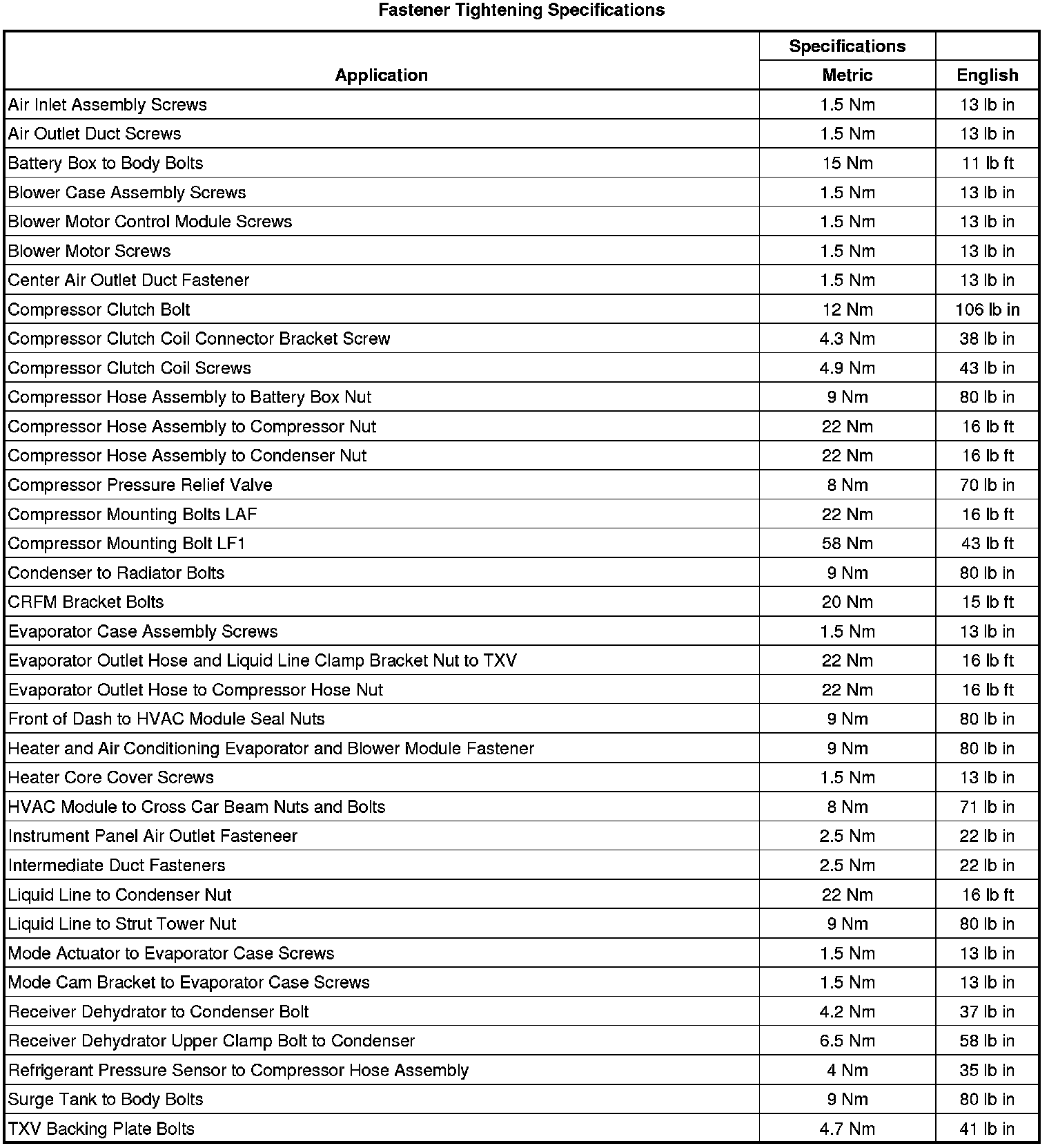 Fastener Tightening Specifications