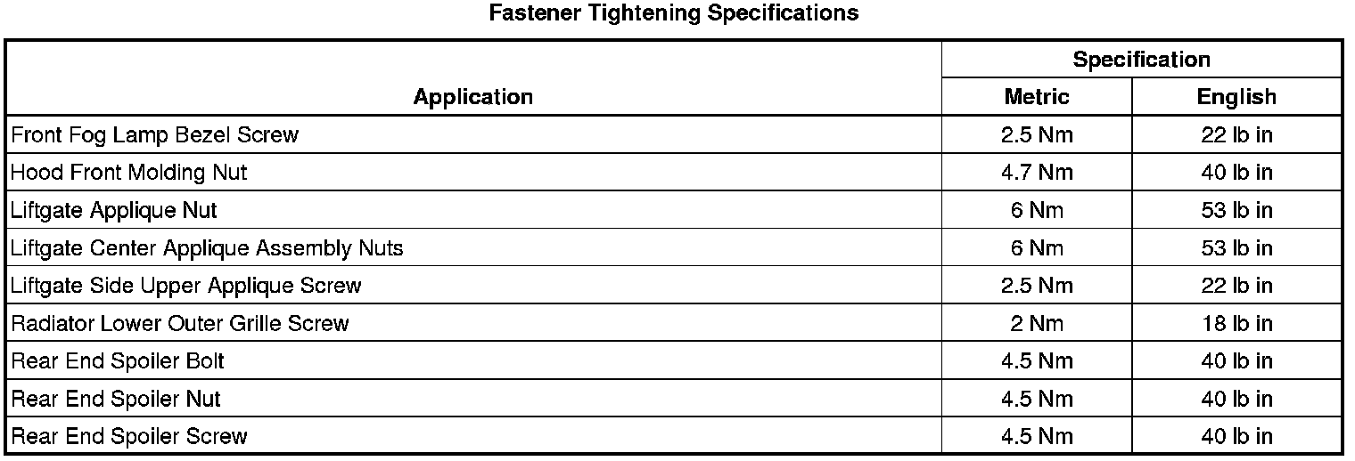 Fastener Tightening Specifications